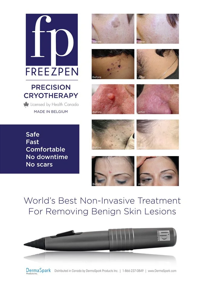 ![]()  Cyrothérapie Par FREEZEPEN ®TRAITE LES LÉSIONS COMMUNES SUR LE VISAGE ET LE CORP: • Taches de vieillesse • Étiquettes de peau • Verrues • Autres lésions bénignes MEILLEUR TRAITEMENT NON INVASIF AU MONDE POUR ÉLIMINER LES LÉSIONS CUTANÉES BÉNIGNES • Sûr • Rapide • Confortable • Pas de temps d'arrêt • Pas de cicatrices FREEZPEN EFFACE LES LÉSIONS ET DÉFAUTS CUTANÉS EN TOUTE SÉCURITÉ, AVEC PRÉCISION ET CONFORT, GRÂCE À LA CRYOTHÉRAPIE. QU'EST-CE QUE LA CRYOTHÉRAPIE? La cryothérapie est l'étalon-or pour l'élimination des lésions cutanées en dermatologie et dans les pratiques esthétiques. C'est la destruction contrôlée des tissus indésirables grâce à l'application d'un froid extrême. QU'EST-CE QUI REND LE FREEZPEN DIFFÉRENT? FreezPen utilise de l'oxyde nitreux (N2O), une alternative plus sûre à l'azote liquide (N2), qui est couramment utilisé dans d'autres formes de cryothérapie. Le N2O gèle et détruit rapidement les cellules ciblées, mais il n'est pas si froid qu'il cause des dommages indésirables aux tissus sains environnants. De plus, l'applicateur FreezPen, conçu pour la précision, permet une sortie de gaz qui cible uniquement la lésion et offre une précision maximale pendant le traitement.